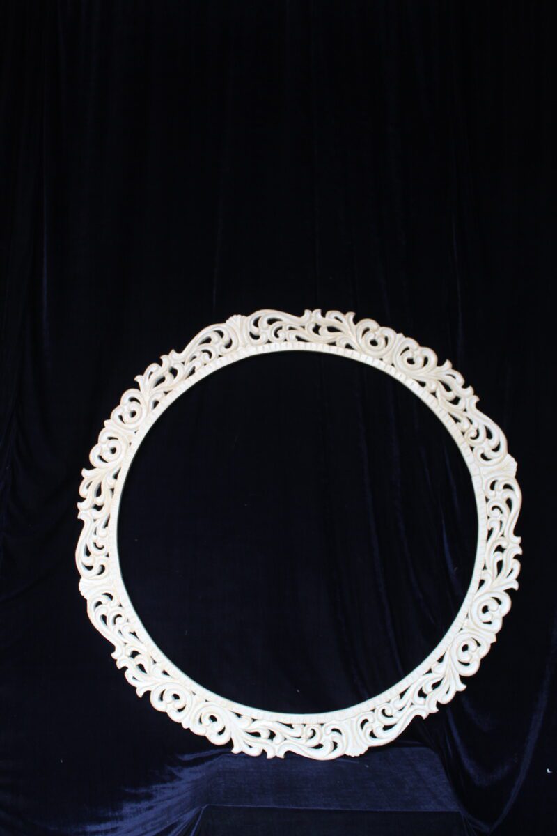 Gaze into timeless elegance with the Royal Carved Round Mirror Frame, where art meets reflection in a perfect circle of grandeur. Hand-carved with majestic precision, this regal piece evokes the ornate beauty of palace interiors—its detailed flourishes and graceful curves inspired by the elegance of royal courts and classical European design.